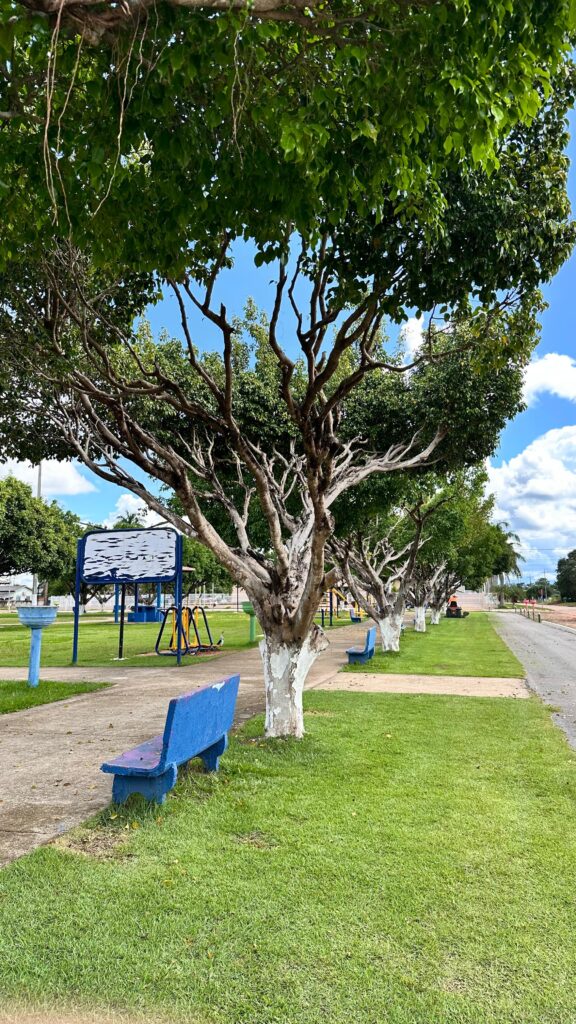 A Prefeitura de São Miguel do Guaporé realizou recentemente os serviços de limpeza e roçagem do gramado da Praça Municipal dos Três Poderes, garantindo um espaço mais organizado, seguro e agradável para a população.