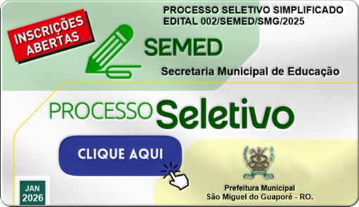 O Município de São Miguel do Guaporé – RO, por meio da Secretaria Municipal de Educação (SEMED), torna pública a realização do Processo Seletivo Simplificado para Contratação Emergencial de Profissionais da Educação por Tempo Determinado.