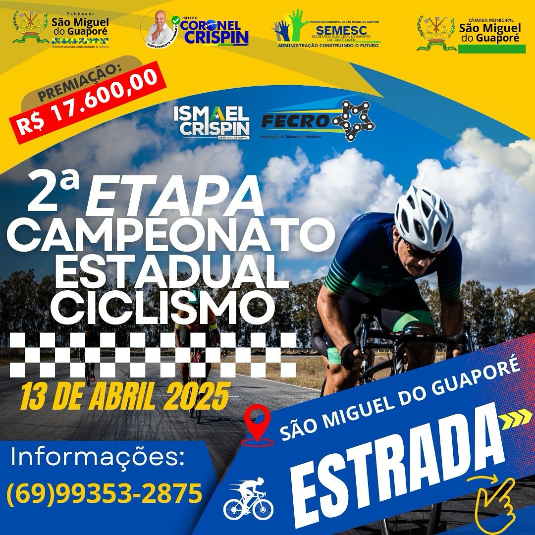 No dia 13 de abril de 2025, São Miguel do Guaporé foi palco da 2ª Etapa do Campeonato Estadual de Ciclismo, um dos eventos mais aguardados do calendário esportivo regional.