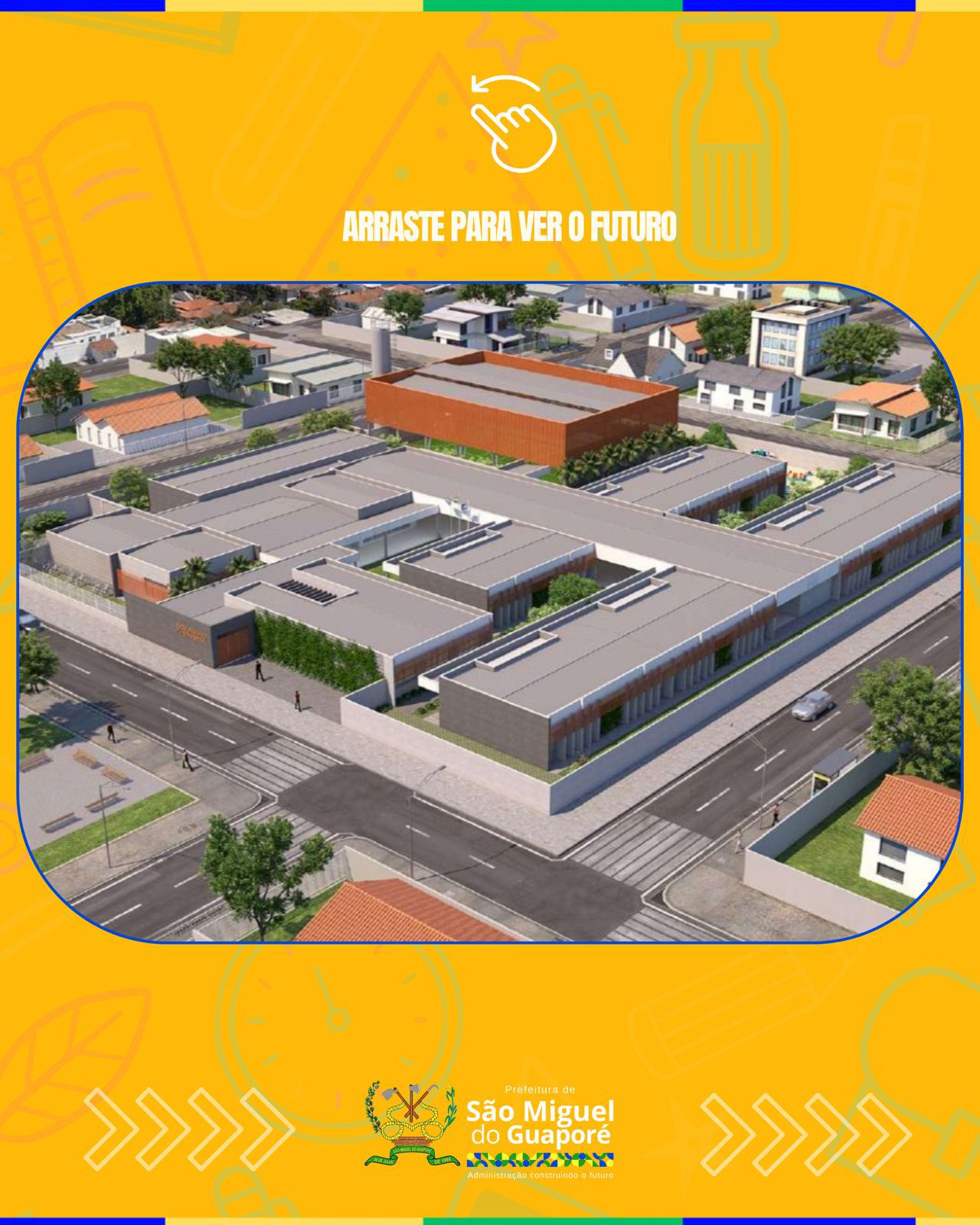 A Prefeitura de São Miguel do Guaporé apresenta o projeto da nova Escola de Ensino Fundamental, um espaço moderno, acolhedor e totalmente planejado para oferecer mais conforto e qualidade no aprendizado dos nossos alunos.